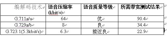實(shí)際通話占用帶寬可以參考下表: