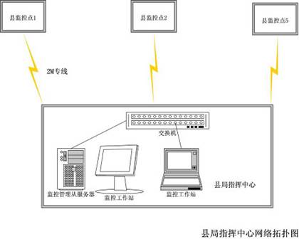 市局監(jiān)控中心設(shè)置一臺(tái)PC機(jī)安裝服務(wù)器端軟件作為主監(jiān)控系統(tǒng)服務(wù)器,配置兩臺(tái)PC機(jī)安裝客戶端軟件作為監(jiān)控工作站。監(jiān)控管理員通過(guò)監(jiān)控工作站實(shí)時(shí)監(jiān)視市局監(jiān)控點(diǎn)視頻圖像、遠(yuǎn)程控制一體化球機(jī)。同時(shí),主監(jiān)控系統(tǒng)服務(wù)器接收縣局監(jiān)控點(diǎn)圖像共監(jiān)控管理員瀏覽并遙控球機(jī)。