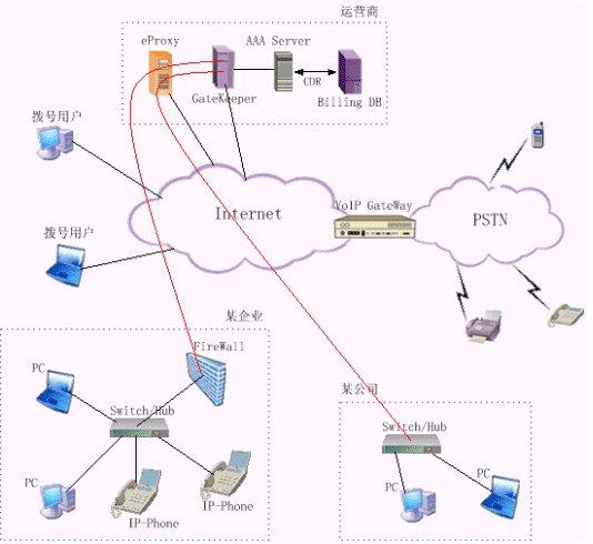 運營級IP電話解決方案為運營商提供一種可靠經(jīng)濟的VoIP接入平臺與VoIP骨干網(wǎng)互連,這種方式可以充分利用網(wǎng)絡資源,降低用戶服務價格,提高運營商的競爭力。它為用戶提供了多種業(yè)務類型,除了可以實現(xiàn)任意兩點間的PC互通外,還可以實現(xiàn)PC通過VoIP網(wǎng)關(guān)與PSTN用戶間的互聯(lián)互通。