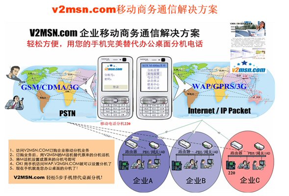 從美國(guó)人貝爾1876年發(fā)明電話一百多年來,當(dāng)電話進(jìn)入企業(yè)辦公后,企業(yè)利用電話通信技術(shù)為企業(yè)的經(jīng)營(yíng)帶來了溝通協(xié)作的高效率,傳統(tǒng)PSTN電話網(wǎng)絡(luò)的時(shí)代企業(yè)都是自購(gòu)和部署傳統(tǒng)的PBX(私有交換系統(tǒng)或集團(tuán)電話系統(tǒng))或采用PSTN固網(wǎng)運(yùn)營(yíng)商提供的CENTREX(匯線通,集線通)來滿足企業(yè)對(duì)外的總機(jī)和內(nèi)部分機(jī)之間通信的需要、到了移動(dòng)通信的時(shí)代,也就是前兩年移動(dòng)運(yùn)營(yíng)商(中國(guó)移動(dòng)、中國(guó)聯(lián)通)為了開發(fā)企業(yè)的通信市場(chǎng)推出了我們稱為“第一代的移動(dòng)總機(jī)”或“商務(wù)總機(jī)”。而IP互聯(lián)網(wǎng)前幾年的迅速發(fā)展以及NGN下一代網(wǎng)絡(luò)發(fā)展逐漸成熟并開始進(jìn)入商用,F(xiàn)MC(Fixed-mobile