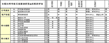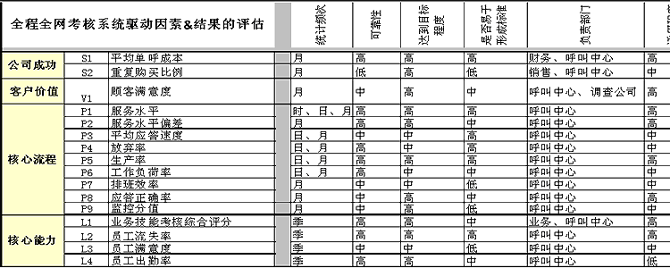 上表為與全程全網(wǎng)考核策略目標相匹配的驅動因素指標與結果指標的列示。