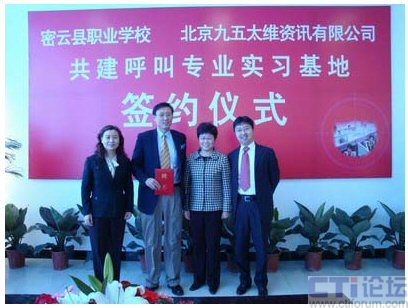 CTI論壇(ctiforum)04月30日消息: 近日,密云縣職業(yè)學校與北京九五太維資訊有限公司校企合作共建呼叫專業(yè)實習基地簽約儀式在密云縣職業(yè)學校隆重舉行,市教委職成處處長李敏,縣委常委副縣長王春林、副縣長錢福生、副縣長徐芳出席簽約儀式并發(fā)表了講話。密云縣教委主任李鐘勤,北京九五太維資訊有限公司董事長汪遠,首席執(zhí)行官李寶民及其培訓師團隊,密云縣經濟開發(fā)區(qū)總公司及部分入區(qū)呼叫企業(yè)出席了簽約儀式。在簽約儀式上,密云縣教委主任李鐘勤向九五太維公司首席執(zhí)行官李寶民博士頒發(fā)了聘書,聘請李寶民博士為密云縣職業(yè)學校名譽校長。