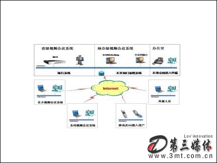 此外,為保證外出領(lǐng)導(dǎo)或員工不會(huì)錯(cuò)過任何一次重要會(huì)議,該套系統(tǒng)需要支持與普通電話、手機(jī)等語(yǔ)音終端的實(shí)時(shí)接入,而專網(wǎng)外計(jì)算機(jī)桌面終端地接入,可保證外出的干部能夠通過普通計(jì)算機(jī)參加重要會(huì)議或培訓(xùn)。該平臺(tái)還要能夠通過升級(jí)支持3G技術(shù)的接入,從而使整套系統(tǒng)能夠順應(yīng)未來通訊技術(shù)的發(fā)展。