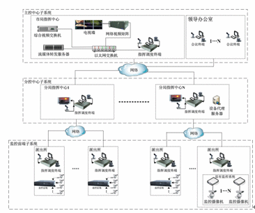 由綜合視頻交換機(jī)、視頻錄像服務(wù)器、網(wǎng)絡(luò)視頻矩陣、流媒體轉(zhuǎn)發(fā)服務(wù)器、指揮調(diào)度終端、音視頻切換矩陣和音視頻輸入輸出設(shè)備等組成,部署在市局指揮中心。主要作用是:完成信令和控制信息交換、調(diào)度以及系統(tǒng)管理;實(shí)現(xiàn)視頻指揮調(diào)度、遠(yuǎn)程視頻瀏覽、視頻錄像和電視墻顯示等功能。
