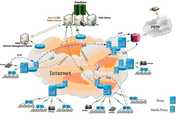 無論大型企業(yè)用戶(通過PBX接入網(wǎng)關設備)、小型企業(yè)用戶(使用網(wǎng)關設備)還是其它使用單口網(wǎng)關或IP Phone的用戶,都可以通過各種接入方式接入到ECM3.0網(wǎng)絡中,并通過PROXY及MEDIA