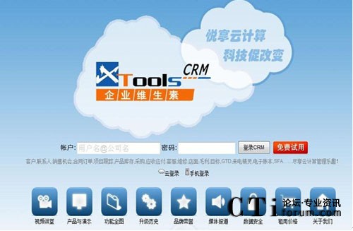 用戶可以選擇訪問速度最快的服務器登錄自己的CRM系統(tǒng),以解決擁有各地辦事機構(gòu)的人都能快速訪問。據(jù)稱,XTools的“云”服務能保證更高的安全服務和電信級的高達99.99%的連接率。