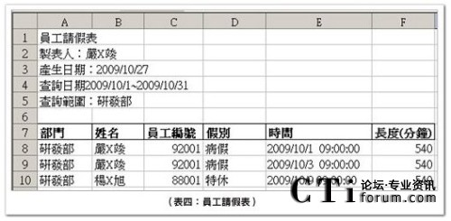 此表主要呈現(xiàn)員工請假明細,用于現(xiàn)場管理時,主管審核座席員臨時請假的核可依據(jù),以及結(jié)算考勤或是考核時的查核數(shù)據(jù)。