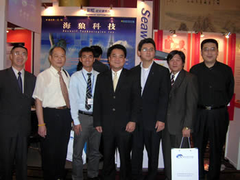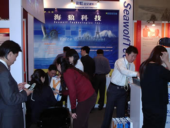 2005年5月18日在北京長(zhǎng)城飯店召開(kāi)的《2005中國(guó)IP語(yǔ)音網(wǎng)絡(luò)、軟交換及SIP研討會(huì)暨展覽會(huì)》上,海狼科技展臺(tái)前人頭攢動(dòng),很多商家對(duì)海浪科技技術(shù)和產(chǎn)品的表現(xiàn)感到相當(dāng)滿意,并有新加坡、臺(tái)灣客戶現(xiàn)場(chǎng)購(gòu)買產(chǎn)品。