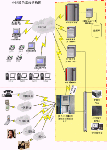 在和創(chuàng)世紀(jì)全能通的基礎(chǔ)下電信、網(wǎng)通、移動(dòng)、聯(lián)通、鐵通、衛(wèi)通等電信運(yùn)營商可用來做下一代網(wǎng)絡(luò)(NGN)業(yè)務(wù)及運(yùn)營,虛擬電信運(yùn)營商和增值業(yè)務(wù)服務(wù)商、新興電信運(yùn)營商開展各種電信運(yùn)營、增值業(yè)務(wù)和搶占語音市場的利器。(具體有關(guān)‘如何用全能通平臺(tái)切入語音市場’,請(qǐng)來來電咨詢)