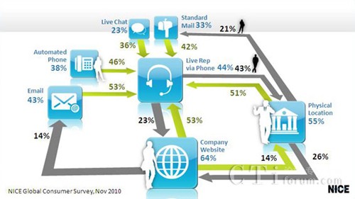 許多企業(yè)機(jī)構(gòu)如今通過多種接觸點(diǎn)聯(lián)系客戶,例如網(wǎng)絡(luò)、聊天工具、電郵和社會傳媒。這些渠道有助于降低成本并且可使企業(yè)機(jī)構(gòu)保持其在各自行業(yè)內(nèi)的競爭力。隨著客戶對技術(shù)知識的逐步深入了解,他們更加期望獲得一系列便捷可用的渠道。