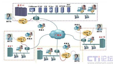 如上圖所示,由于Cisco IPCC是基于標(biāo)準(zhǔn)IP網(wǎng)絡(luò)的純IP呼叫中心解決方案,呼叫中心的核心設(shè)備都只部署在省中心機(jī)房,其它地市只需要在原有網(wǎng)絡(luò)的路由器上添加語(yǔ)音模塊即可實(shí)現(xiàn)PSTN語(yǔ)音的本地接入,而無(wú)需再各地市購(gòu)買額外的接入設(shè)備。而同樣由于IP網(wǎng)絡(luò)的特性,呼叫中心的坐席可以根據(jù)需要部署在甘肅省運(yùn)輸管理局IP網(wǎng)絡(luò)可達(dá)的任何一個(gè)地方,各地市的坐席只需要配備IP電話和座席PC即可。來(lái)自PSTN的電話根據(jù)用戶在IVR中的選擇和其它路由策略,自動(dòng)分配到最適合的坐席處理,譬如來(lái)自白銀的運(yùn)政投訴由白銀市本地的運(yùn)政大廳座席人員處理。