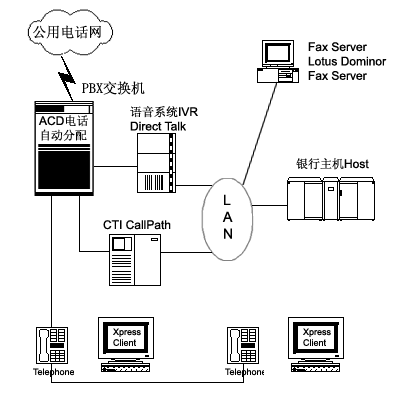 Call Center通過計(jì)算機(jī)技術(shù)和電話語音技術(shù)的結(jié)合,可為銀行的客戶提供集中和規(guī)范化的服務(wù)。Call Center通過與銀行的業(yè)務(wù)系統(tǒng)銜接可以為銀行的客戶提供金融服務(wù),例如,金融查詢,金融轉(zhuǎn)帳,金融交易等服務(wù)。