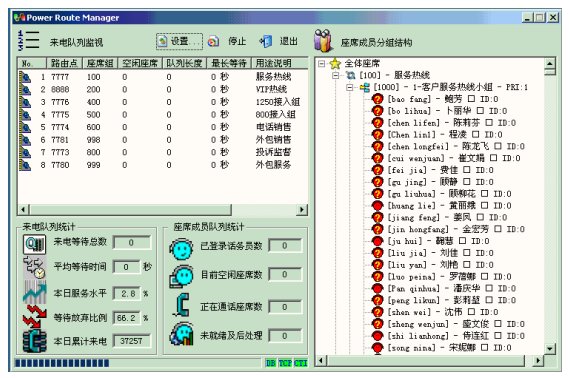 路由管理器是呼叫中心不可或缺的重要部分,一方面它擴(kuò)展了交換機(jī)ACD的功能,從而實(shí)現(xiàn)呼叫的智能分配、平衡負(fù)載;另一方面,它對座席的分組、狀態(tài)進(jìn)行動(dòng)態(tài)的監(jiān)控和管理,并向其他相關(guān)應(yīng)用提供實(shí)時(shí)狀態(tài)信息和基礎(chǔ)統(tǒng)計(jì)數(shù)據(jù)。