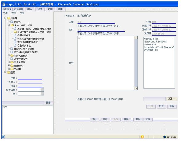 8)知識庫:業(yè)務(wù)信息和業(yè)務(wù)知識以知識庫的方式進(jìn)行管理和查詢,為坐席和知識庫管理人員提供樹狀分支并支持模糊查詢的知識庫,通過它可以迅速查找出相應(yīng)的知識點(diǎn),可以對知識條目進(jìn)行收藏和查詢排名。