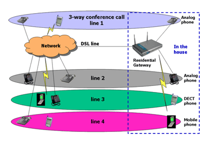 下一代住宅網(wǎng)關(guān)提供領(lǐng)先的數(shù)據(jù)能力,且還可擔(dān)當(dāng)家庭語音和數(shù)字通信的中樞。某些住宅網(wǎng)關(guān)將支持用VoIP替換標(biāo)準(zhǔn)普通老式電話服務(wù)(POTS),而其它網(wǎng)關(guān)將提供用于固定移動融合(FMC)的平臺,從而更進(jìn)一步。這就允許消費(fèi)者在室外時(shí),利用與常規(guī)移動電話一樣工作、支持Wi-Fi的移動電話通過蜂窩網(wǎng)絡(luò)接打電話和接入互聯(lián)網(wǎng)。當(dāng)消費(fèi)者回屋后,電話會感知這一變化并與無線局域網(wǎng)(WLAN)連通,然后可將其當(dāng)無繩VoIP電話使用。市場研究公司iSupply預(yù)計(jì),2006年售出了2,200萬部具有Wi-Fi功能的移動電話,到2010年,該數(shù)字將達(dá)2.85億部。