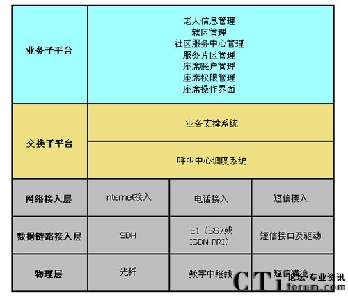 根據(jù)社區(qū)內(nèi)老人的情況,為加入社區(qū)呼叫系統(tǒng)(以下簡稱入網(wǎng))的老人發(fā)放老人專用手機,并將采集到的老人檔案信息上傳于系統(tǒng)內(nèi)。當老人通過手機固定一個撥號鍵撥打“服務(wù)中心服務(wù)統(tǒng)一電話號碼”時,社區(qū)呼叫平臺根據(jù)老人所在位置將來電直接轉(zhuǎn)給對應(yīng)社區(qū)服務(wù)中心,社區(qū)服務(wù)中心的座席電腦上就會彈出老人信息(包括:名字、地址、聯(lián)系電話、兒女親屬電話、所在街道的社區(qū)、有無病史、歷史需求記錄等等)。
