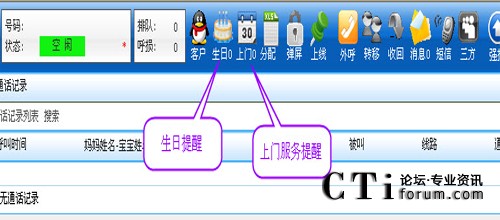 2、號(hào)碼歷史記錄自動(dòng)查詢,寶貝媽媽聯(lián)絡(luò)情況一點(diǎn)即知,并配合特別設(shè)計(jì)的母嬰客戶信息管理系統(tǒng),實(shí)現(xiàn)來電、去電自動(dòng)彈屏,業(yè)務(wù)種類、聯(lián)系意向、用戶類型、消費(fèi)能力同時(shí)呈現(xiàn);