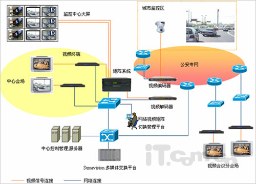 針對的公安系統(tǒng)的需求以及上述原則,北京數(shù)碼視訊專門推出了符合公安需求的視頻會議系統(tǒng)版本和專門針對公安行業(yè)的視頻會議解決方案(網(wǎng)絡圖如下)。整體系統(tǒng)都體現(xiàn)了簡明、高效、清晰、穩(wěn)定可靠的特征。能有效提高指揮決策的效率,突出信息化優(yōu)勢,并應付一些突發(fā)事件或特殊情況。遇到緊急場合,如全國犯罪抓捕、救災、防汛、傳染性疾病突襲等,可以利用視頻服務系統(tǒng)及時了解情況、發(fā)布決策以及協(xié)調工作等等。