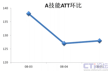 3月份開始采用新上崗員工和隊列溢出等策略接聽處理A技能話務(wù),隨著業(yè)務(wù)熟悉度的提高,ATT從138秒下降到127秒,環(huán)比有8%的下降幅度,說明加強培訓(xùn)操作,可以有效降低ATT。
