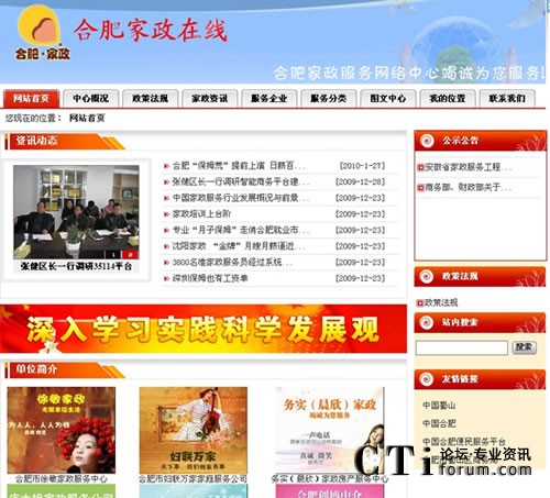 CTI論壇(ctiforum)3月5日消息(記者 楊毅):2009年末,由深圳市深海捷科技有限公司(簡稱“深海捷”)提供技術(shù)支持的合肥家政服務(wù)網(wǎng)絡(luò)中心正式上線。合肥家政網(wǎng)絡(luò)中心是安徽省商務(wù)部第一批批準(zhǔn)建立的家政服務(wù)網(wǎng)絡(luò)中心,合肥家政網(wǎng)絡(luò)中心的建立為安徽全省的家政服務(wù)建設(shè)提供了極大地參考標(biāo)準(zhǔn)。市民足不出戶,通過登錄合肥家政服務(wù)網(wǎng)絡(luò)中心官方網(wǎng)站:http://web1.35114.cc/WebSite/51628/index.shtm即可找到滿意的家政服務(wù)。