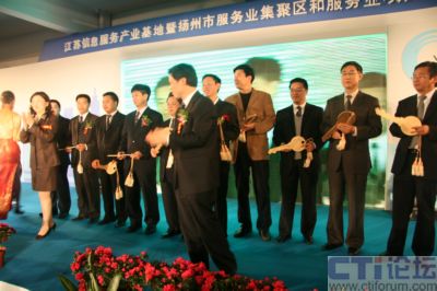 4月21日,江蘇信息服務(wù)產(chǎn)業(yè)基地暨揚州市服務(wù)業(yè)集聚區(qū)和服務(wù)業(yè)項目推介洽談會在江蘇信息服務(wù)產(chǎn)業(yè)基地(揚州)隆重召開,省信息產(chǎn)業(yè)廳副廳長龔懷進(jìn)、揚州市委常委、常務(wù)副市長張京霞為省信息安全技術(shù)中心揭牌,中國網(wǎng)通集團(tuán)公司總工程師滕勇,神州數(shù)碼高級副總裁陳勇,上海萬得信息股份董事長陸風(fēng)等數(shù)十位集團(tuán)公司老總現(xiàn)場祝賀,同時IBM、AVAYA、優(yōu)勝資訊、神州數(shù)碼等60多家企業(yè)現(xiàn)場簽定了投資合作協(xié)議,而華潤通信、中國電信、酒店無憂、漢世紀(jì)等10家企業(yè)則從廣陵區(qū)委書記孔令俊手中接過了入駐金鑰匙,成為首批入駐江蘇信息服務(wù)產(chǎn)業(yè)基地的企業(yè),至此江蘇信息服務(wù)產(chǎn)業(yè)基地迎來首發(fā)項目招商的“開門紅”,江蘇信息服務(wù)產(chǎn)業(yè)基地也因此被業(yè)界冠以中國首家專業(yè)定位信息呼叫和數(shù)據(jù)處理產(chǎn)業(yè)的“中國聲谷”的美譽。 “江蘇信息服務(wù)產(chǎn)業(yè)基地(揚州)”位于廣陵新城內(nèi),為省信息產(chǎn)業(yè)廳與揚州市政府聯(lián)手打造的中國首家專業(yè)定位于呼叫信息和數(shù)據(jù)處理產(chǎn)業(yè)的省級信息服務(wù)業(yè)基地,占地2.52平方公里,總投資50億元,處于揚州ECBD核心區(qū)域,交通便捷,區(qū)位優(yōu)勢獨特,生態(tài)環(huán)境優(yōu)美。基地按照“產(chǎn)業(yè)社區(qū)”的標(biāo)準(zhǔn)和“商務(wù)公園”的理念規(guī)劃建設(shè),重點發(fā)展信息服務(wù)產(chǎn)業(yè)及具有揚州特色的城市信息化應(yīng)用軟件和嵌入式軟件產(chǎn)業(yè),立足長三角、面向全國、服務(wù)世界,逐步發(fā)展成為全國乃至世界呼叫中心產(chǎn)業(yè)最佳實踐基地、全國生產(chǎn)性服務(wù)業(yè)的標(biāo)桿示范基地及呼叫中心人才培訓(xùn)與派遣基地。
