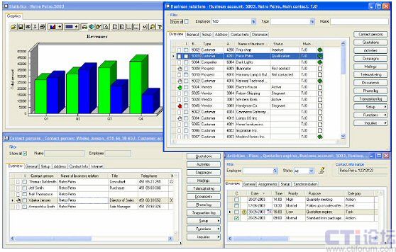 銷(xiāo)售和市場(chǎng)管理能夠在一個(gè)位置上收集企業(yè)的所有商務(wù)信息,通過(guò)結(jié)構(gòu)化方式對(duì)其進(jìn)行組織并使其隨時(shí)處于可用狀態(tài)。這種產(chǎn)品為企業(yè)提供了確定客戶(hù)需求以及優(yōu)化銷(xiāo)售與推廣決策所必需的洞察力。系統(tǒng)允許企業(yè)高效共享來(lái)自商務(wù)關(guān)系中各個(gè)方面的信息,并使每一名員工都成為真正的客戶(hù)專(zhuān)家。