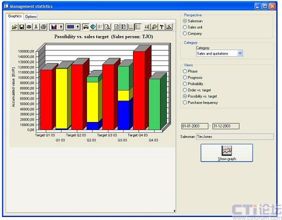 使企業(yè)用戶(hù)可以獲得與銷(xiāo)售相關(guān)的主要信息的圖形化視圖。通過(guò)該方案能夠簡(jiǎn)化機(jī)會(huì)和管道管理,由此可獲得銷(xiāo)售和營(yíng)銷(xiāo)成果的即時(shí)概況,同時(shí)可以提供銷(xiāo)售和營(yíng)銷(xiāo)經(jīng)理與其團(tuán)隊(duì)之間的有效協(xié)作。企業(yè)可通過(guò)系統(tǒng)建立和監(jiān)視銷(xiāo)售單位中每個(gè)成員的銷(xiāo)售目標(biāo),并可以快速方便地瀏覽或修改該目標(biāo),能夠快捷地獲得季度或年度目標(biāo)的即時(shí)概況,并且使用直觀的圖形化圖表顯示這些關(guān)鍵數(shù)據(jù)和數(shù)據(jù)趨勢(shì)。管理層還可以對(duì)銷(xiāo)售歷史的任意時(shí)間段中的銷(xiāo)售人員相關(guān)的收入和支出、盈利和虧損數(shù)據(jù)進(jìn)行分析和比較。