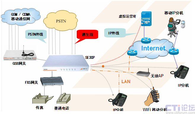Trunk號、內(nèi)部小號),實現(xiàn)多路由選擇;支持PSTN外部用戶,如與GS8移動模塊網(wǎng)關(guān)配合使用,還可實現(xiàn)移動的中繼服務,解決中繼不足問題,且有一號通等功能;擁有逃生功能,解決緊急狀況的通信問題。虛擬辦公室的概念,為客戶提供更自由的辦公通信手段。采用WEB管理方式,使用便捷,維護簡單。
