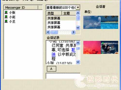 清揚即時通信與視頻會議軟件: 通過視頻會議,只要坐在計算機前,就可以與本地或者外地,固定或者移動,局域網(wǎng)或者廣域網(wǎng)的同事們進行跨地域空間的卻又面對面的視頻會議。通過屏幕共享,坐電腦前能夠觀看遠程的電腦操作,也可以操作電腦讓遠程電腦觀看;通過共享播放,把VCD教育片播放給遠程電腦觀看,也可以收看遠程的播放;通過即時通信,把通知瞬間發(fā)布到所有同事,也可以把文件瞬間傳送給大家,還能夠接受來自同事的通知信息和文件;通過遠程協(xié)助,可以求助同事遠程操作自己的電腦等等,……,有了清揚即時通信與視頻會議,遠在天涯的辦公室已近在眼前,移動辦公和異地辦公也不再有隔閡。