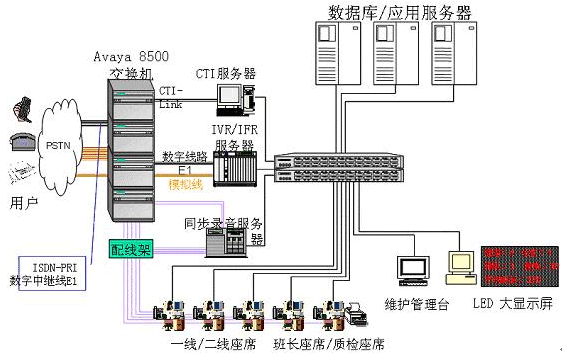 - 交換機(jī)/排隊(duì)機(jī):選用AVAYA的S8500交換機(jī)作為前端排隊(duì)設(shè)備。