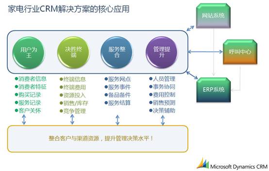 Techsun家電行業(yè)CRM解決方案基于Microsoft Dynamics CRM這一優(yōu)秀平臺,實現(xiàn)了對客戶、渠道資源的統(tǒng)一客戶,對銷售、市場、服務(wù)職能的全面支持,滿足了復(fù)合渠道整合的管理需求。Microsoft Dynamics CRM基于SOA架構(gòu),具有易集成的特點,滿足了家電行業(yè)多種復(fù)雜異構(gòu)系統(tǒng)的集成需求。