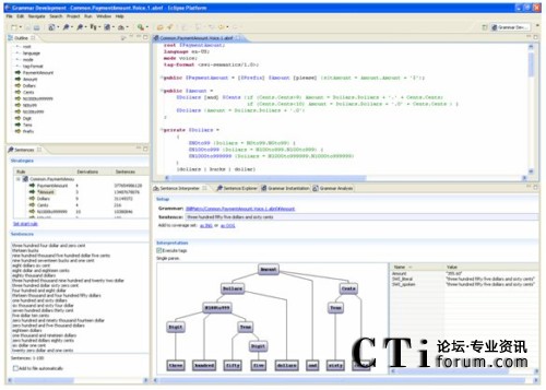 這里強調(diào)的Eclipse插件,除了本身作為優(yōu)秀工具,還提供了附加于Eclipse工作臺內(nèi)的順暢互操作性:你可以一邊看著對應(yīng)呼叫者輸入的對話流程,一邊檢查和完成語音識別語法;你也可以一邊構(gòu)建連接后臺的Web服務(wù)代碼,一邊通過簡單地拖放來調(diào)整應(yīng)用邏輯。開發(fā)者首次擁有了對所有應(yīng)用方面的同時控制,無須在不同IDE之間進(jìn)行切換,或者在選擇單一環(huán)境時在特性上的折衷。
