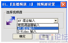 其中支持三種視頻源:從電視調(diào)諧器輸入是對(duì)應(yīng)電視光纖信號(hào)輸入,av混合輸入則對(duì)應(yīng)從電視卡的av端子輸入,s-video輸入對(duì)應(yīng)從S-video端子輸入。由于遠(yuǎn)教接收機(jī)只能輸出av信號(hào),我這里是連接電視卡的av端子接收遠(yuǎn)教電視節(jié)目的。因此這里選擇“AV混合輸入”,確定即可。