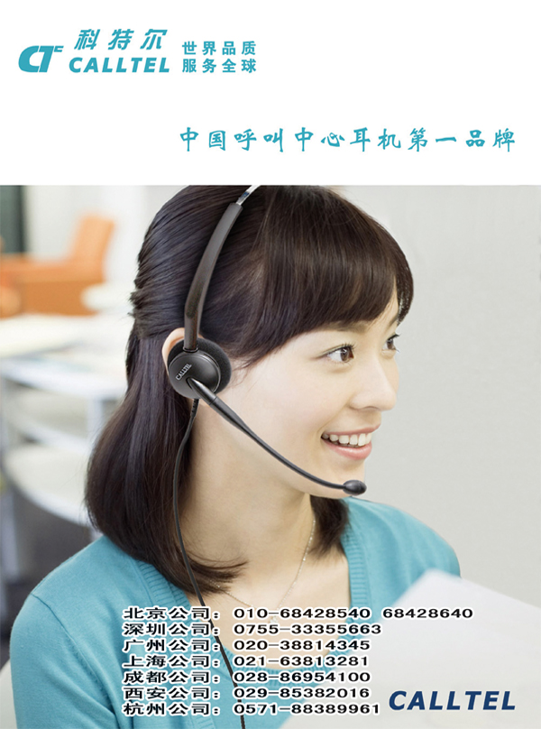 泰訊通訊集團(tuán)公司(北京、廣州、上海、成都、西安)屬下的CALLTEL科特爾品牌,始創(chuàng)于2000年,生產(chǎn)基地位于廣東省東莞市,目前是中國(guó)呼叫中心耳機(jī)行業(yè)的第一品牌,在以下領(lǐng)域取得了中國(guó)乃至全球領(lǐng)先的市場(chǎng)地位。2005年-2009年,CALLTEL連續(xù)五年保持中國(guó)銷量第一的優(yōu)勢(shì),開創(chuàng)了國(guó)產(chǎn)耳機(jī)占據(jù)市場(chǎng)主導(dǎo)地位的新紀(jì)元,在中國(guó)呼叫中心耳機(jī)發(fā)展史上樹立起一座新的里程碑,CALLTEL從而毫無(wú)爭(zhēng)議地成為中國(guó)呼叫中心耳機(jī)行業(yè)的第一品牌。