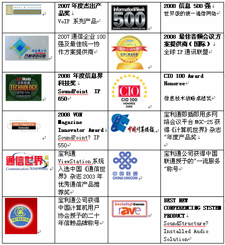 的產(chǎn)品一直在質(zhì)量和易于使用性方面享有盛譽(yù),下面是Polycom音頻產(chǎn)品獲得的部分獎項。