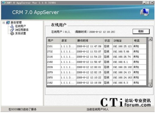 從下圖的列表可以看到實時的用戶連接數(shù),每個客戶端的CPU序列號,硬盤序列,和唯一的登陸序列。并且可以選擇指定的用戶,對用戶做強迫下線,發(fā)送消息,截取用戶屏幕等操作。