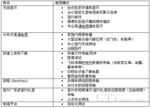 在表1中例舉出了當前一些比較超前的應用模式,這些模式需要更高的數據傳輸量來支持“無線辦公”的要求。