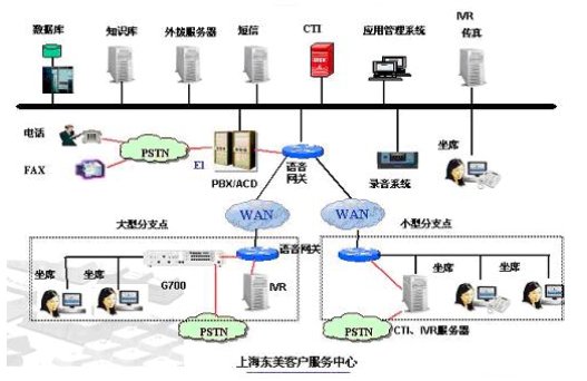 中心點(diǎn)和分支點(diǎn)的客服系統(tǒng)通過兩地的語(yǔ)音網(wǎng)關(guān)進(jìn)行語(yǔ)音連接,具體實(shí)現(xiàn)大概是,如果分支點(diǎn)需要把語(yǔ)音轉(zhuǎn)接到中心點(diǎn),分支點(diǎn)把TDM語(yǔ)音轉(zhuǎn)接到語(yǔ)音網(wǎng)關(guān),語(yǔ)音網(wǎng)關(guān)把TDM語(yǔ)音信號(hào)轉(zhuǎn)變?yōu)镮P包,通過網(wǎng)絡(luò)發(fā)送到中心點(diǎn)的語(yǔ)音網(wǎng)關(guān)上,語(yǔ)音網(wǎng)關(guān)把IP包變?yōu)門DM語(yǔ)音信號(hào),在接入到交換機(jī)上,由中心點(diǎn)CTI按照指定的策略轉(zhuǎn)接到最終目標(biāo)上。