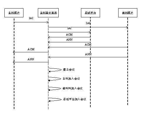 步驟6:彩話平臺(tái)產(chǎn)生會(huì)議,將主叫、被叫和彩話音樂加入到會(huì)議中。