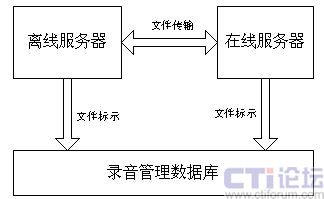 錄音文件通過(guò)HXD09交換機(jī)將語(yǔ)音文件實(shí)時(shí)存放到在線服務(wù)器上。通過(guò)系統(tǒng)的設(shè)置,在線服務(wù)器將超過(guò)保存期限的語(yǔ)音文件移到離線服務(wù)器上,同時(shí)將語(yǔ)音文件管理數(shù)據(jù)庫(kù)本文件進(jìn)行標(biāo)示,標(biāo)示為已經(jīng)為離線語(yǔ)音文件,并將在在線服務(wù)上的語(yǔ)音文件刪除。