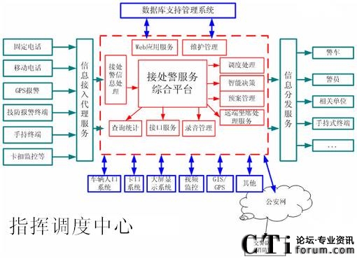 利用有線、無線通信或計(jì)算機(jī)網(wǎng)絡(luò),通過話音通信、數(shù)據(jù)通信實(shí)現(xiàn)處警命令的下達(dá),可以實(shí)現(xiàn)一警多處,多部門協(xié)調(diào)出警。