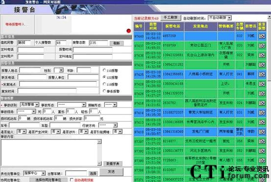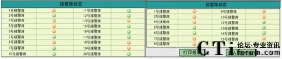 監(jiān)督臺(tái)顯示所有接處警坐席的工作狀態(tài),并用不同的顏色標(biāo)示不同的狀態(tài)。
