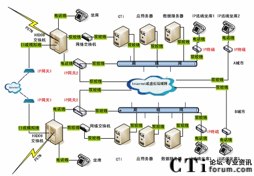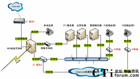 在這樣的背景下,我公司結(jié)合自身CTI設(shè)備優(yōu)勢(shì),進(jìn)一步融入先進(jìn)的VOIP技術(shù),以實(shí)現(xiàn)各種用戶語音建設(shè)及網(wǎng)絡(luò)建設(shè)的需求。以下就我公司VOIP語音解決方案進(jìn)行簡(jiǎn)單介紹,敬請(qǐng)有關(guān)專家、讀者批評(píng)指正。