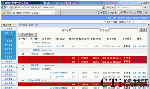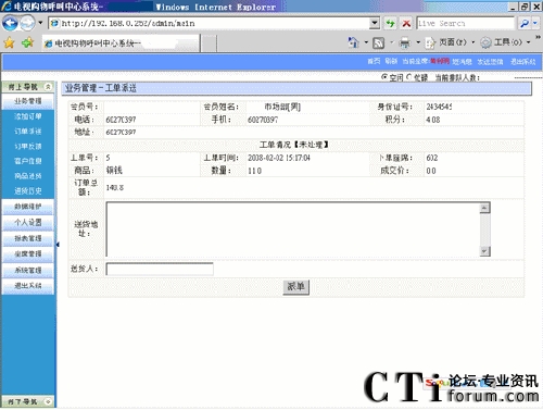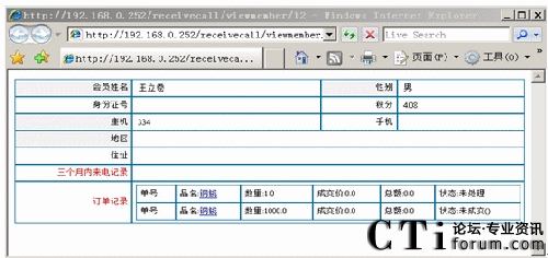 座席員工可以根據姓名、電話、訂單編號查詢出客戶的詳細定購信息、郵寄單號、歷史定購、咨詢歷史等。