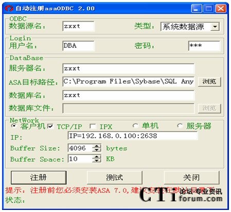 作為網(wǎng)絡(luò)版的客戶端,需配置服務(wù)器的IP地址及端口號(端口號為2638)