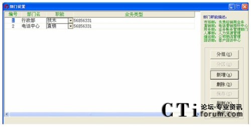 設(shè)置公司相關(guān)部門的編號、名稱及各部門的職能,業(yè)務(wù)類型即為各部門對應(yīng)的業(yè)務(wù)號碼。