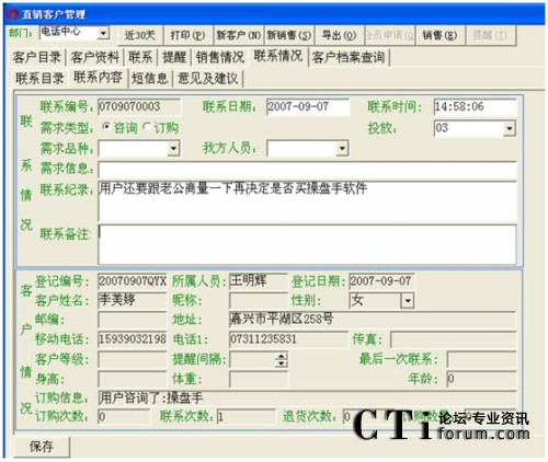 類型:可以設(shè)置類型為有效、無效、銷售、咨詢、全部來進行查找。