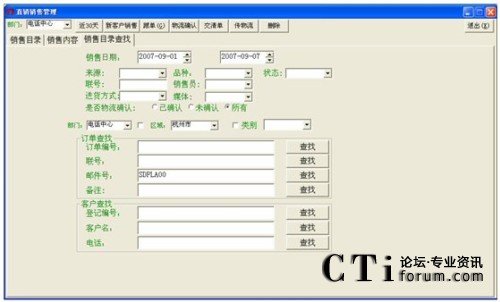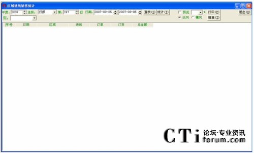 設(shè)定好相應(yīng)的時間,先點擊統(tǒng)計,再點擊查找即可顯示各個區(qū)域的總進線、總訂單、總訂貨數(shù)及總金額。
