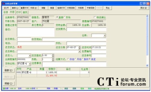 銷售人員(直銷部、市場部、回訪部)開據(jù)銷售訂單后,系統(tǒng)并不馬上提交物流部,必須進行物流確認后,系統(tǒng)自動將該訂單提交給物流部。物流確認后的訂單將不能進行任何修改。