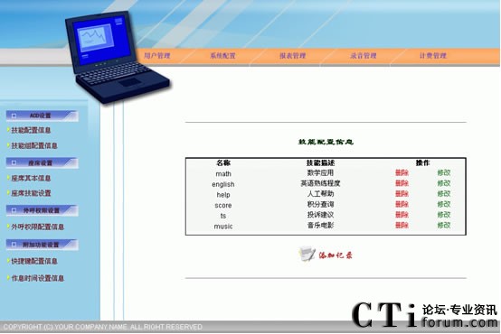 系統(tǒng)自動對所有的通話錄音,錄音文件為WAV格式,可以通過系統(tǒng)管理頁面收聽。